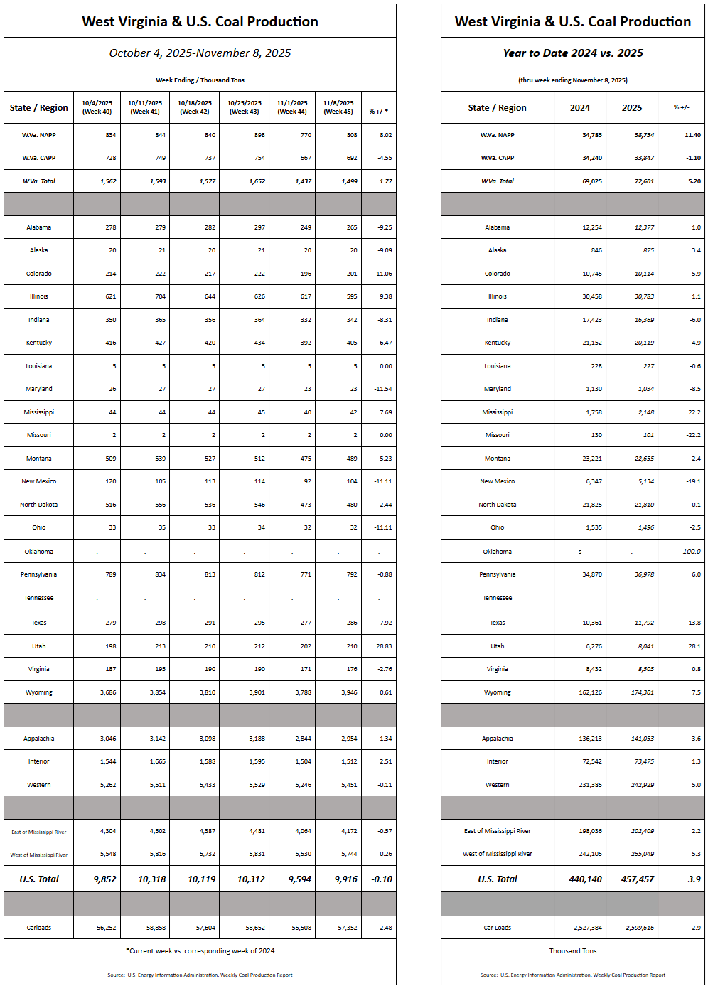 - The Weekly Production / Consumption Report: Week 45 (Nov.8) has been posted.