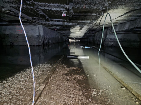 The challenges and danger were high level. Nobody had ever tried to dive in a coal mine. The water would be cold, there would be no surface space, and it would be impossible to see. Those were the known dangers. Palmatier and his team entered water that was saturated with coal dust and visibility was zero in an environment with debris floating near the mine roof and unknown piles of twisted debris along the floor. They used the mine’s life-line to guide them through the entries. They were unable to see markers to let them know where they were, but the lights on their helmets gave a reflective glow to at least point them in the right direction.