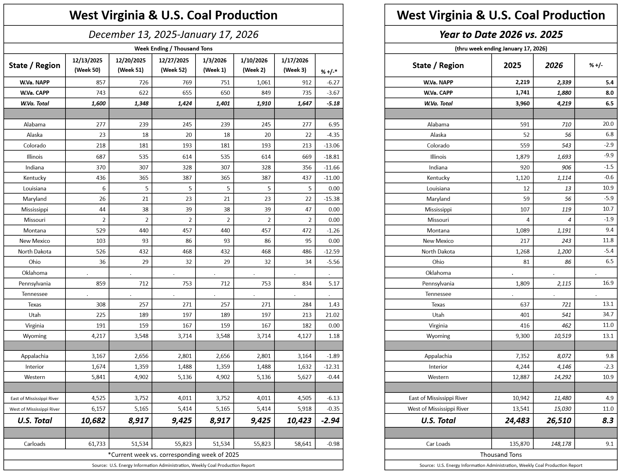 - The Weekly Production / Consumption Report: Week 3 (Jan. 17) has been posted.