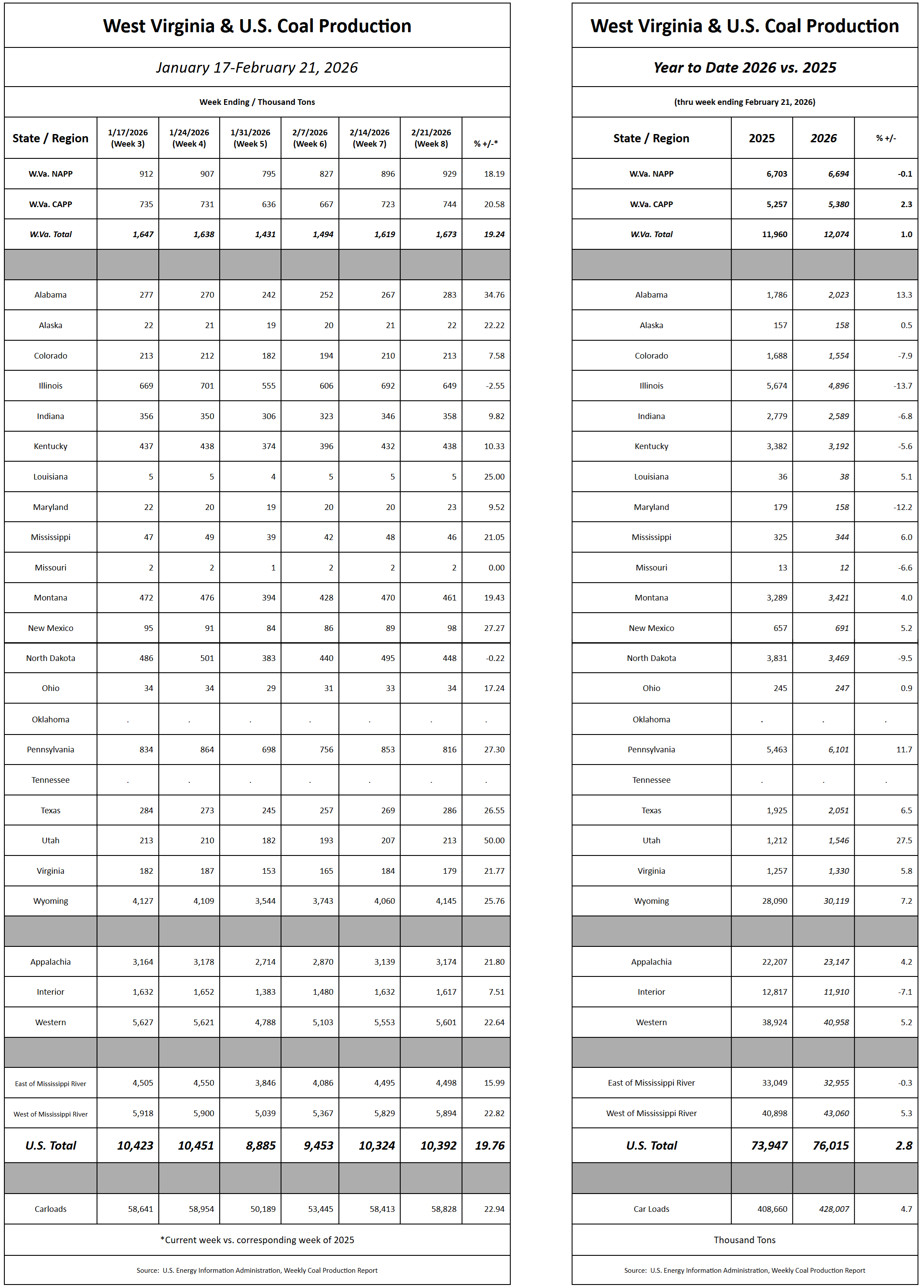 - The Weekly Production / Consumption Report: Week 8 (Feb. 21) has been posted.