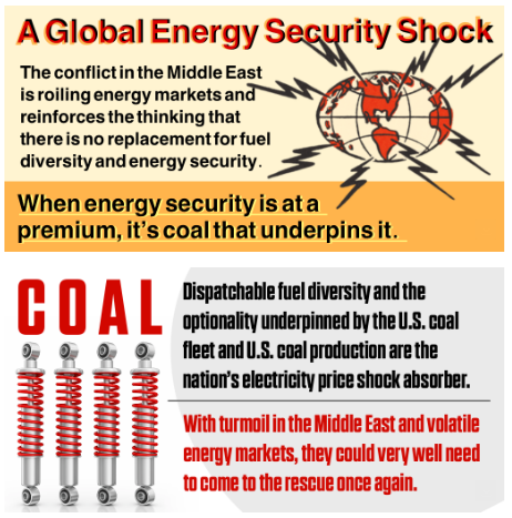 Rising domestic natural gas prices are already a leading driver of electricity price inflation. A deeply disruptive war in the Middle East with widespread impacts on energy trade flows could very well drive prices even higher. Dispatchable fuel diversity and the optionality underpinned by the U.S. coal fleet and U.S. coal production are the nation’s electricity price shock absorber. They could very well need to come to the rescue once again.