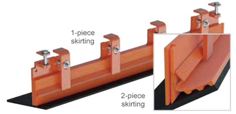 The choice of one- or two-piece ApronSeal™ Urethane Skirting depends on the available space along the belt edge.