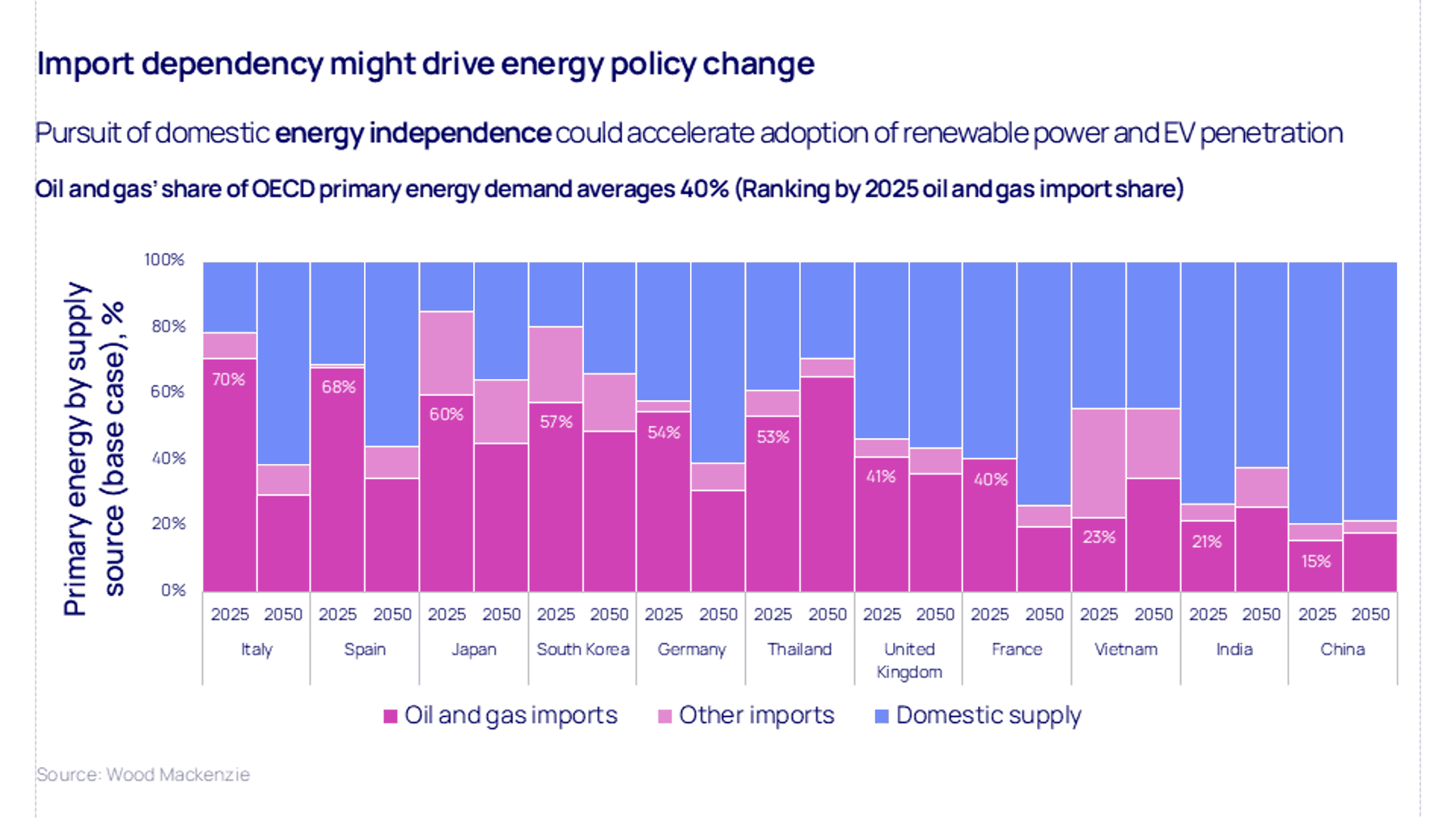 In a recently published new scenario, our Energy Transition experts – Prakash Sharma, Jom Madan and Lindsey Entwistle – consider what happens if the war in Iran proves to be the catalyst for hydrocarbon-importing countries to push hard for energy independence. I asked them about the implications, including for oil and gas demand.