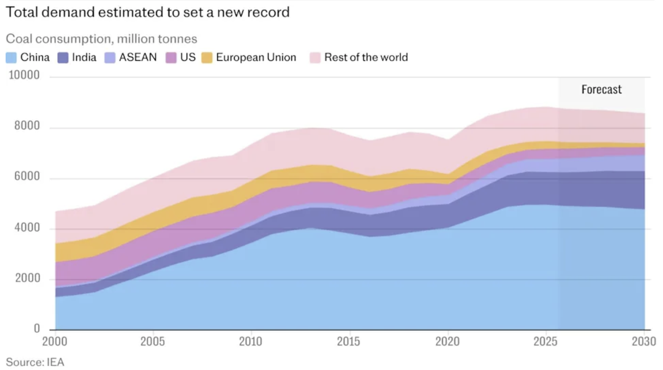 The IEA said global coal demand in 2025 grew by just 0.4pc annually, or around 30 million tonnes, less than the 1.4pc seen in 2024.