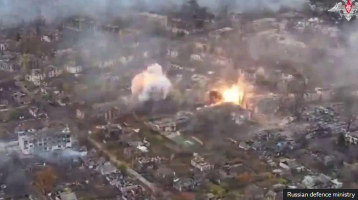 Russia's defence ministry posted footage of a Ukrainian village being bombed just outside Pokrovsk