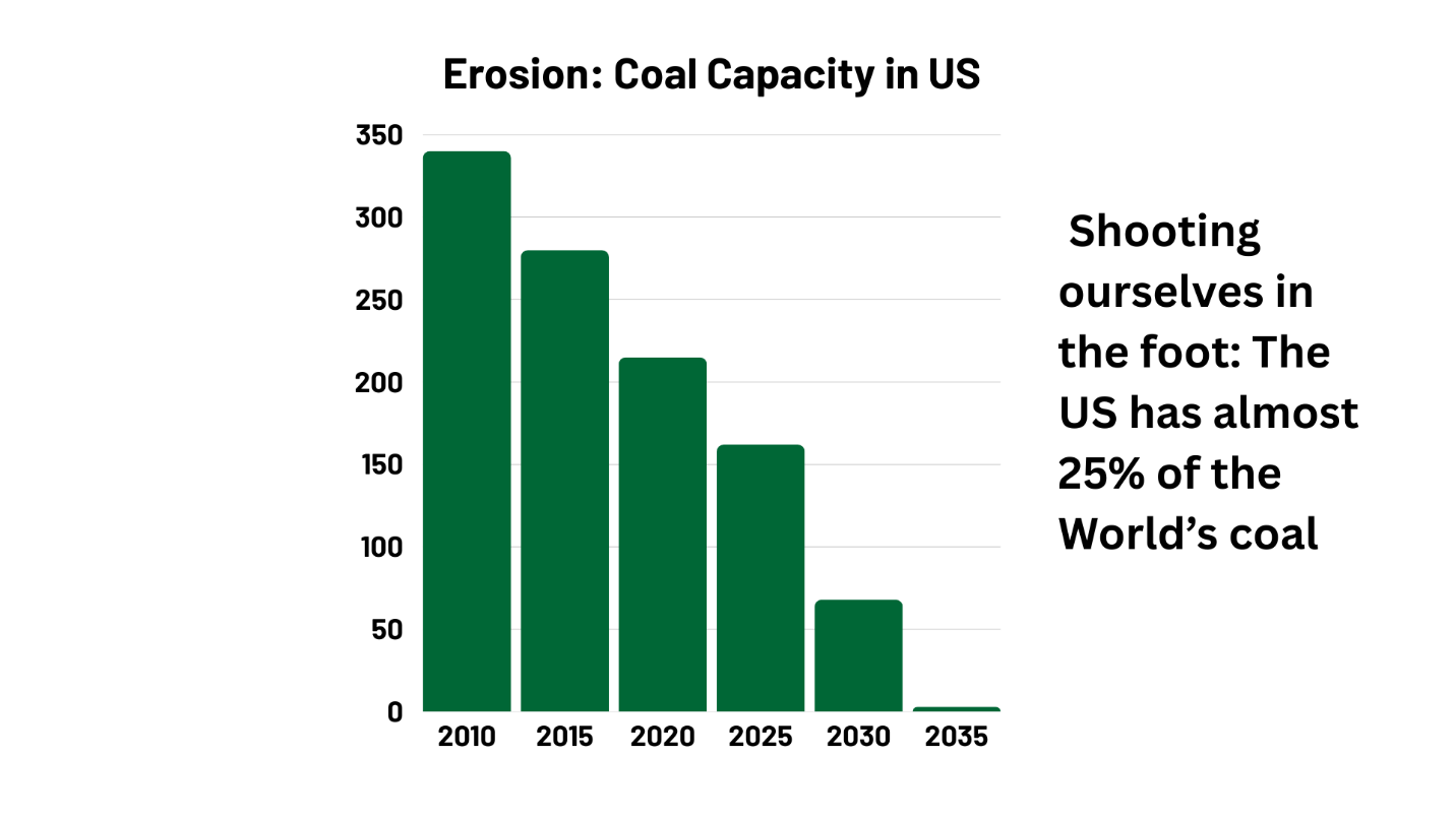 But the lemming-like trend continues as coal power plants are scheduled to close in such states as Michigan (2025) –the 1,420 MW J.H.Campbell Plant; Maryland (2029) -- Brandon Shores 1,273 MW; Indiana (2028) – Rockport Generating Station 2,600 MW ; Colorado (2026) Craig Station Unit 1-446MW, Washington (2026) Centralia Plant 730 MW. And here’s the kicker, Pennsylvania plans to retire all of its coal plants by 2030.