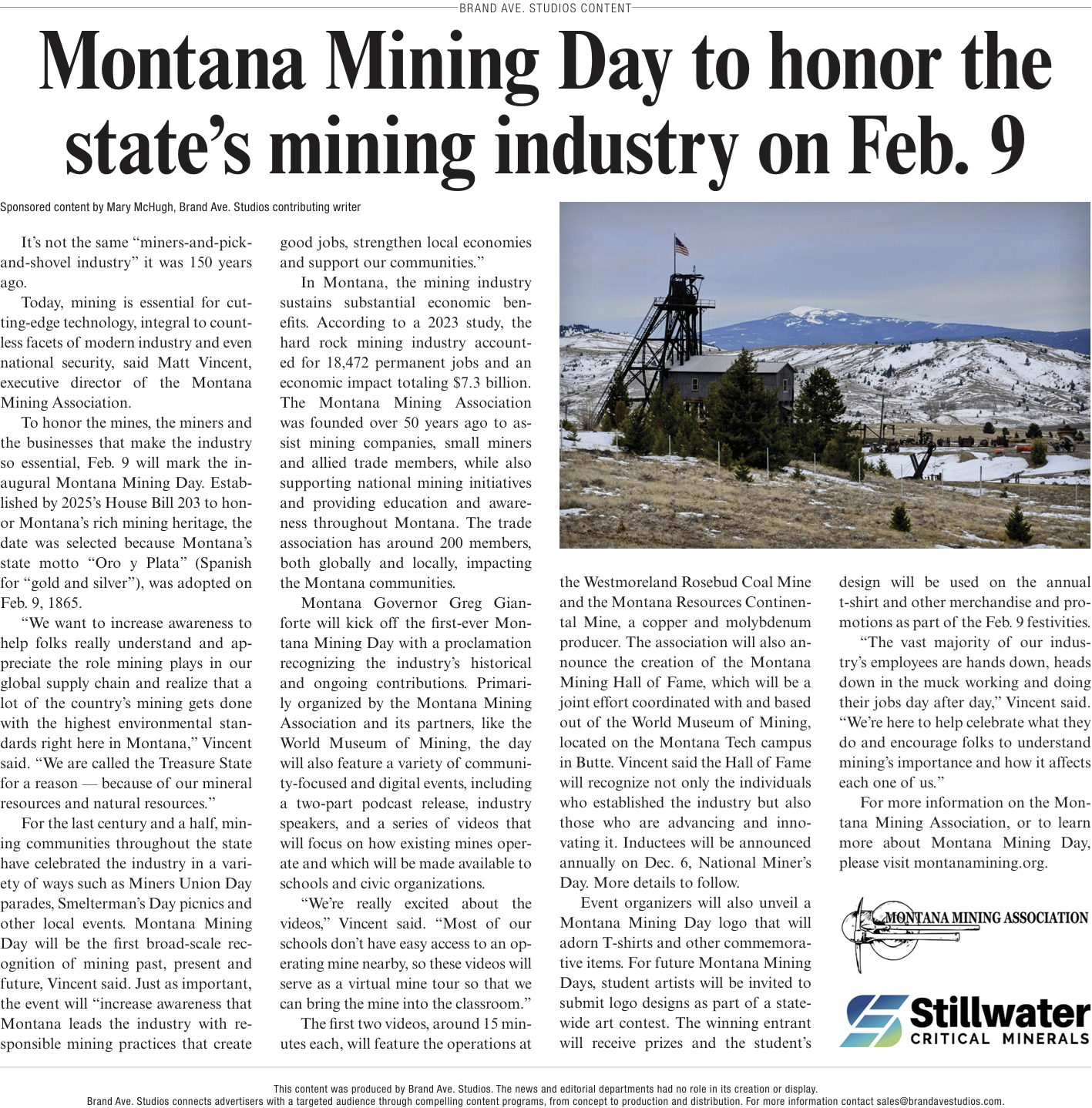 Montana's Mining Day to Honor the State's Mining Industry on February 9