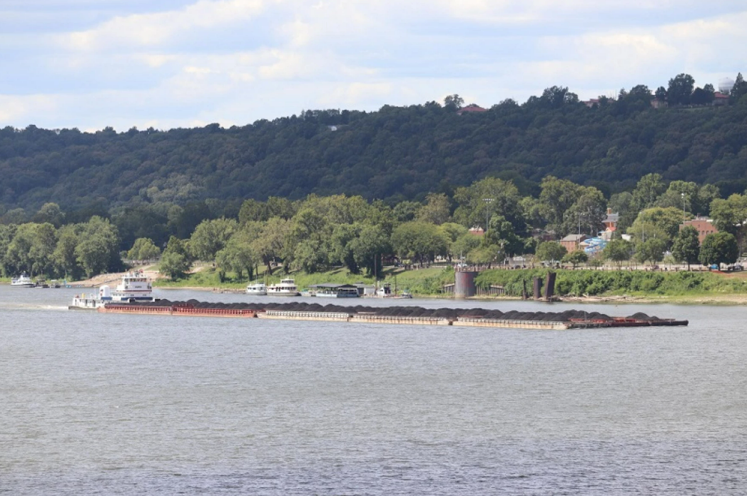 Barges loaded with coal pass Milton, KY on the Ohio River