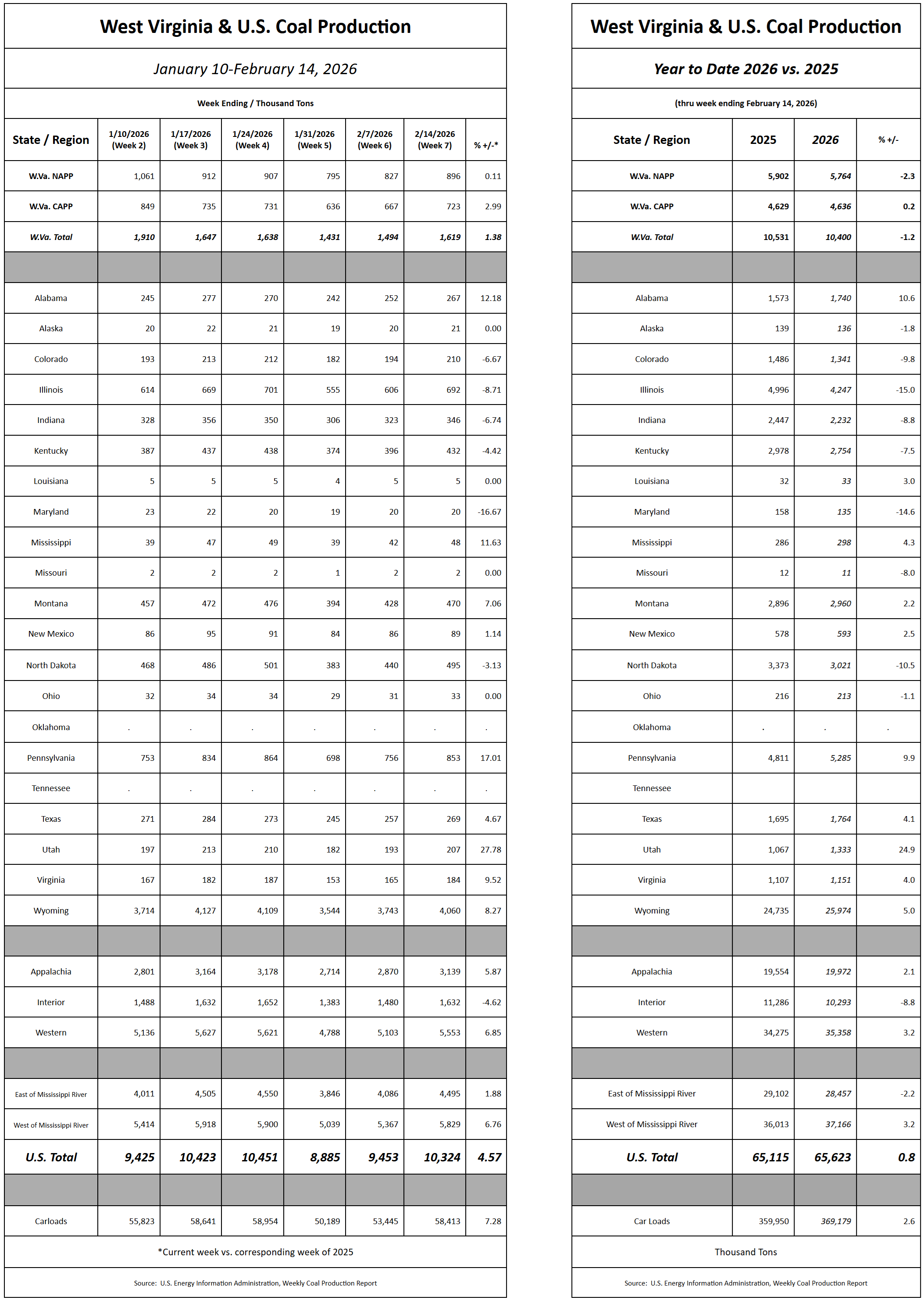 - The Weekly Production / Consumption Report: Week 7 (Feb. 14) has been posted.