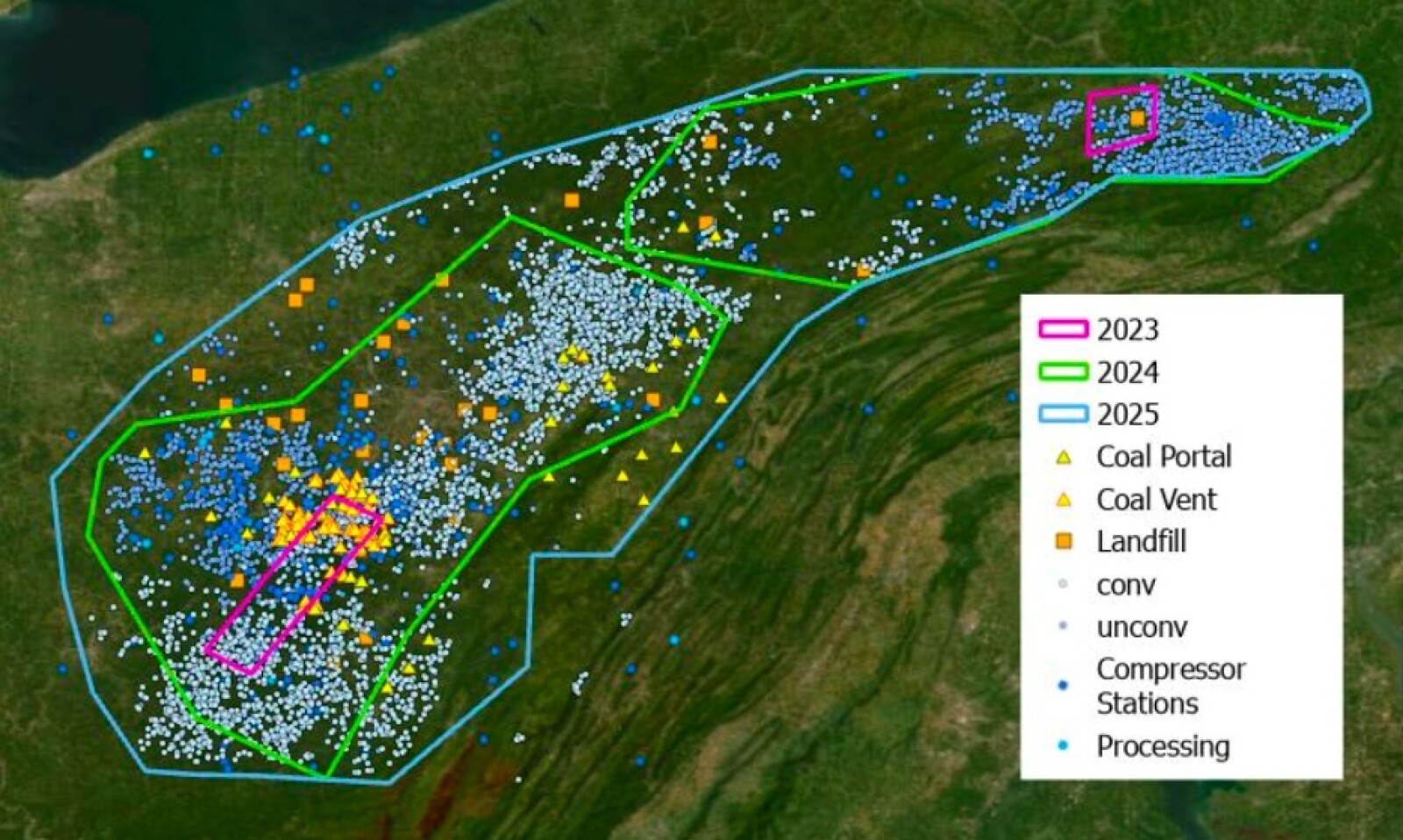 The Appalachian Methane Initiative 2025 report on methane intensity in the Appalachian Basin significantly expanded its coverage from previous surveys. Source: The University of Texas at Austin The study was conducted with the Energy Emissions Modeling and Data Lab (EEMDL) at The University of Texas at Austin and Colorado State University, with support from SLR International, and used nearly 17,000 unique surveyed sites measurements across approximately 31,800 sq miles of the Appalachian Basin. Surveys were conducted between March and October 2025 using Bridger Photonics, Insight M, and ChampionX technologies, covering nearly 6,600 oil and gas sites and approximately 140 other sites, including coal mines and land-lls. “The Appalachian Methane Initiative is one of the world’s most comprehensive methane emissions measurement and mitigation campaign across oil and gas operations,” said Arvind Ravikumar, faculty member at The University of Texas at Austin and co-director of the EEMDL. “Unique to this initiative is the integration of multiscale measurements with operational investigation enabling e-ective, rapid, and observable emissions reduction.” Together, AMI member operators—including CNX Resources, EQT Corporation, MPLX, and Seneca Resources, along with data-contributing operators Ascent Resources and Expand Energy Corporation—represent approximately 17.9 Bcf/D of natural gas production, accounting for more than 50% of the basin’s total production. The 2025 study found a methane loss rate of 0.52% from the full natural gas supply chain, con-rming that the Appalachian Basin continues to have the lowest methane intensity of any major US oil and gas producing region. Independent satellite data from MethaneSAT during the same period aligns with these -ndings. The study also found that conventional wells account for nearly two-thirds of oil and gas methane emissions in the basin, despite producing less than 2% of the region’s natural gas. Expanded 2025 measurements con-rmed this trend. Coal mines and land-lls release signi-cantly more methane per site than oil and gas operations, according to the study. Roughly 80% of large methane plumes detected by satellite in the study area were linked to coal mining operations. The study also revealed that a small number of large emission events account for a disproportionate share of methane releases. |